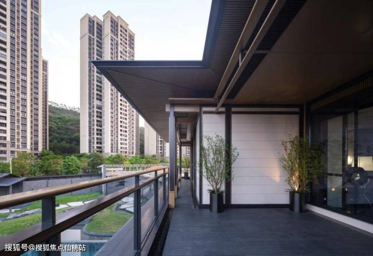 项目的转角地块拥有昭示性与空间感,但也面临周遭高层的压迫与视野阻隔。设计以两大策略应对:一是“扬景”,将园林向外延展,借景化解;二是“破势”,通过抬高建筑、覆以深檐,从视觉上隔断压迫,主动收纳景观。