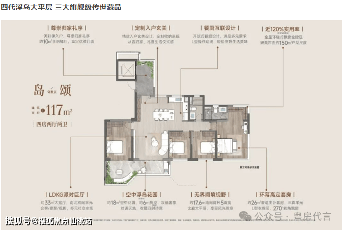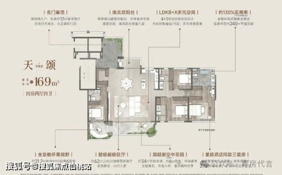 户型面积:建面约117-169㎡,涵盖四居室。
