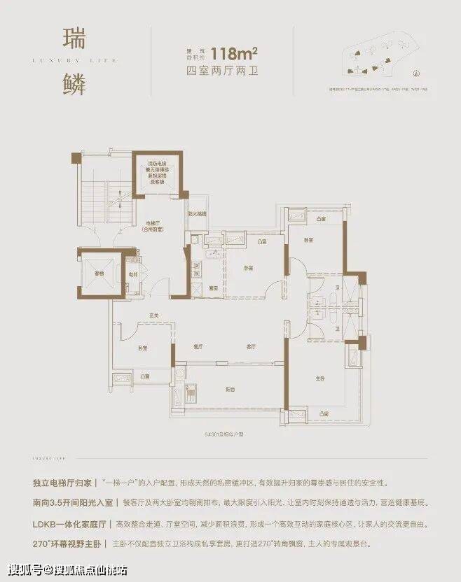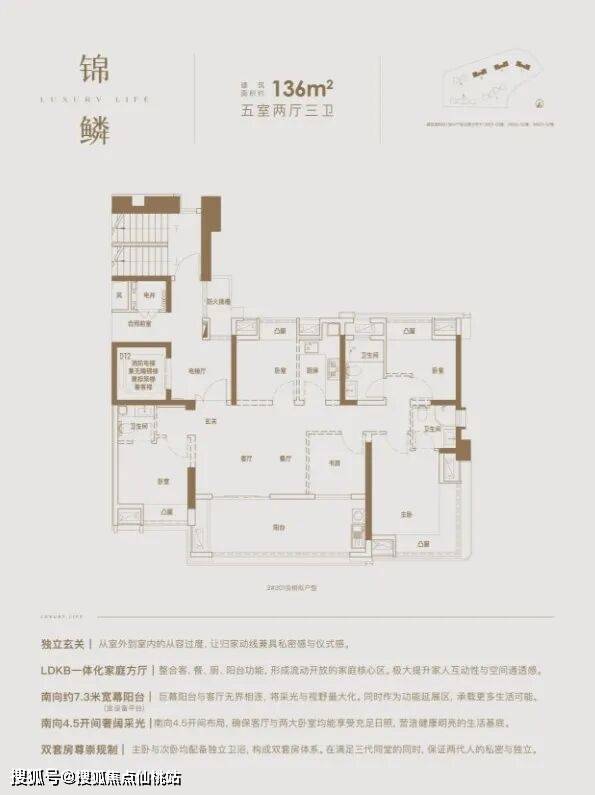 极致空间利用率与功能性:项目主打建面约107-136㎡的改善户型。通过创新的结构设计和空间优化,部分户型的得房率最高可达约97%,远超市场平均水平,实现了“小面积、大空间”的实用价值。采用LDK一体化厅堂设计(客厅、餐厅、厨房一体化),打破传统空间隔阂,极大增强了家庭成员间的互动性与空间的开阔感。结合大面积落地窗,引景入室,营造出明亮、大气的居家氛围。