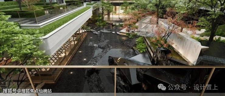:从 6 米高、60 米宽的中轴对称礼仪大门进入,迎宾庭院、中心溪谷、单元门头层层递进,借 5.6 米高差演绎 “高山叠瀑、游径溯溪” 的山水意境,每一步都藏着惊喜。