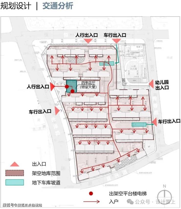 项目摒弃传统平地规划,利用基地天然高差整体抬高约 5.6 米,形成 “地面层 + 抬高层 + 下沉庭院” 的三重立体空间。