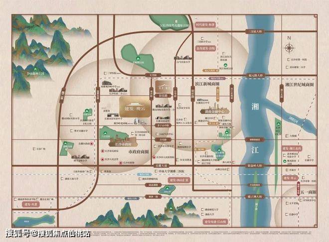 建发观云周边名校云集,一路之隔即为长郡双语高中部,不远处有南雅观沙岭中学、长沙市实验二小,均在步行舒适范围内。