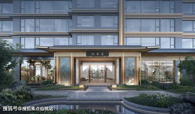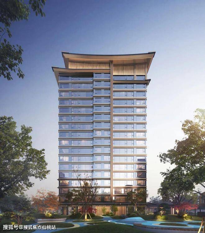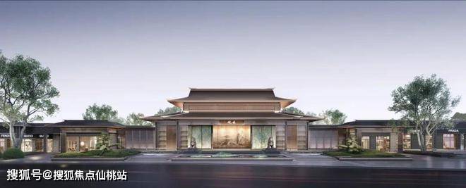 建筑立面取形于宋式宫殿阁楼,新中式风格,飞檐造型,别具一格。