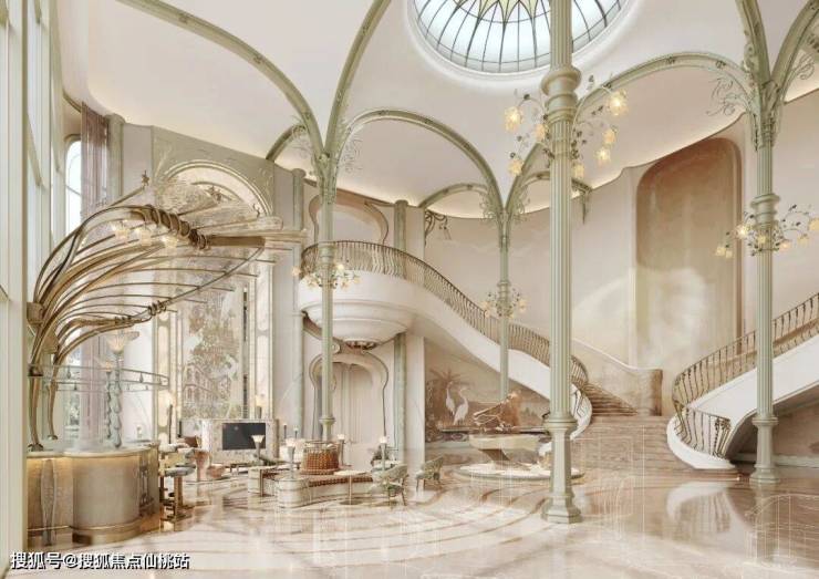 大量运用了流动的曲线元素,打破了现代奢宅的极简冷淡工业风,更赋予建筑一种灵动的美感。