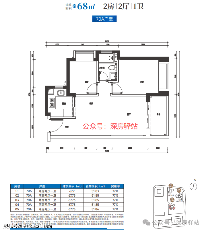 两房户型130套,建筑面积约68平方米;