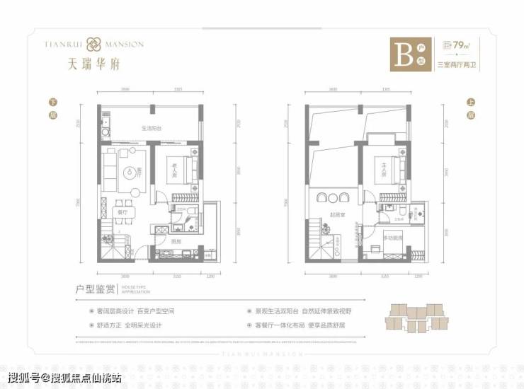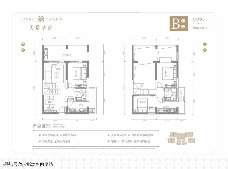 天瑞华府 TIANRUI MANSION———————————【项目概况】总占地:60亩总建筑面积:约74586㎡容积率:1.58绿地率:35%建筑密度:16%总户数:820户产权年限:70年产品设计:约60-119㎡ LOFT/云间平层、瞰海小户项目地址:海南老城科技新城盈滨路7号