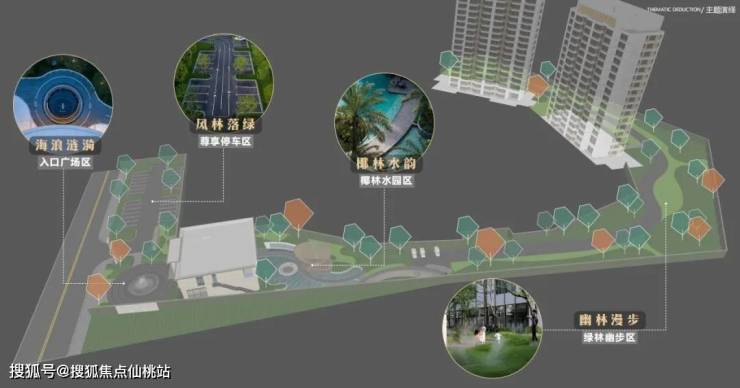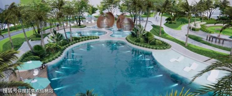 【项目园林设计】· 围合式建筑布局,细节彰显品质追求围合式建筑,以自然曲线之美,造热带森活之境。规划人车分流,锻造度假酒店式的空间体验,居住高级感与滨海度假感兼具的品质社区。