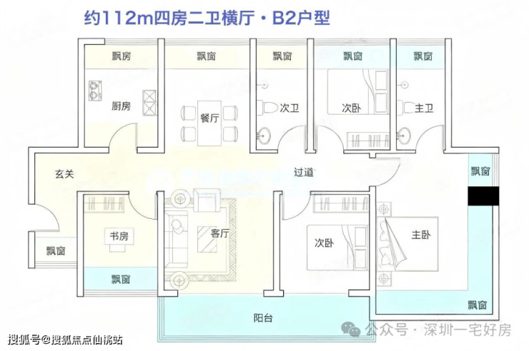 B2户型|112㎡ 4房2厅2卫(满赠南北对流版)