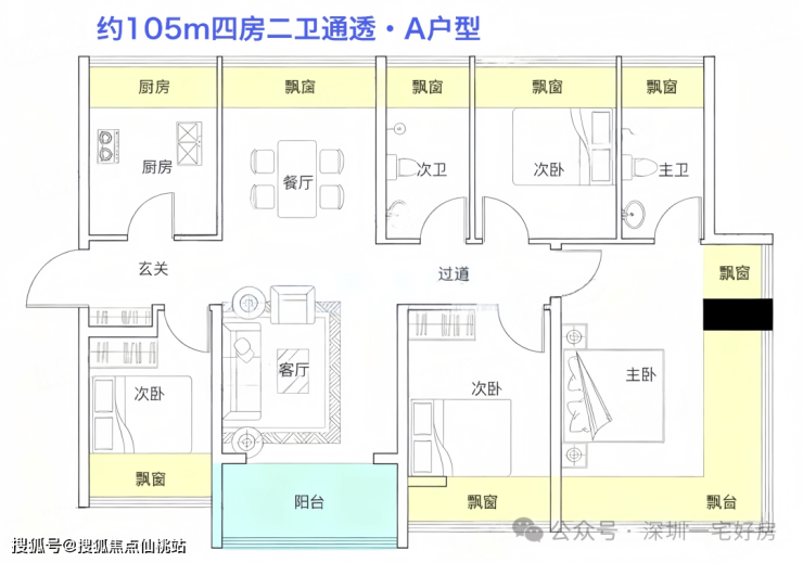 105㎡ 4房2厅2卫(满赠南北对流版)