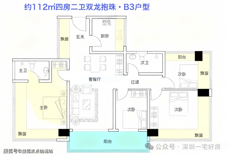 B3户型|112㎡ 4房2厅2卫(满赠双龙抱珠版)