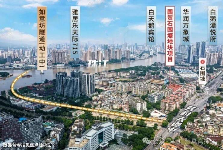 项目距离白鹅潭CBD核心区约1公里,出门往东约200米就是地铁11号线石围塘站,一站就到万象城、大湾区艺术中心等。近距离共享白鹅潭心脏区域的高端配套,近地铁,日常通勤也很便利。在建的如意坊隧道也在附近,开车到老西关只要几分钟,过江去往越秀、天河也会比现在快很多。