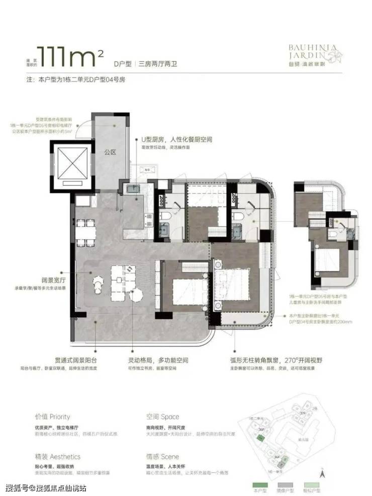 建面约111㎡宽厅阔景 灵动三房;