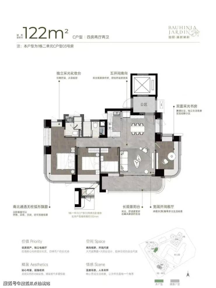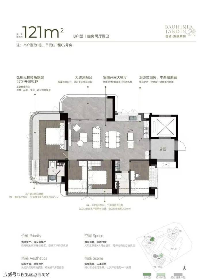 建面约121㎡开阔横厅高配四房;
