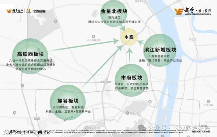 ◎便捷交通:享金星路+长望路黄金十字路网,将串联高铁西交通中心、麓谷智造中心、市府政务中心、滨江金融中心、梅溪湖等长沙政务经济核芯区域南北东西畅通无阻。(数据来源高德地图直线测距)