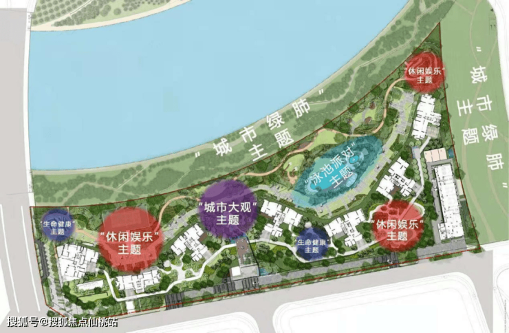 看下图,河湾公园的滨水景观带在家门口展开,一直延伸到整个项目。