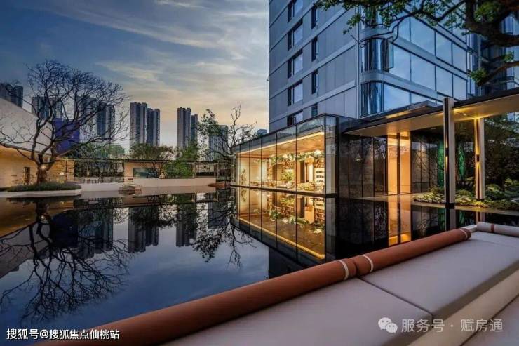 虽然湘江金茂府的占地面积并不大,单以湘江为设计灵感,构建出“五幕水景+三庭花园+双线游园体系”的尽美园林。