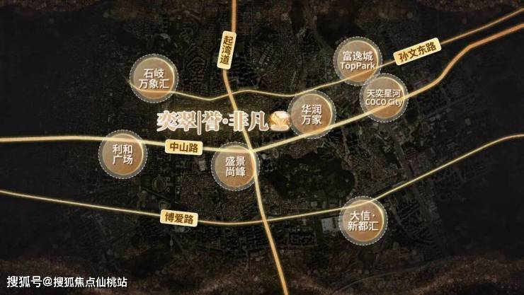 奕翠园,家门一条中山路,短短4公里,就将利和、盛景尚峰、中山天奕星河Cococity,还有华润万家4个商圈串成一线。