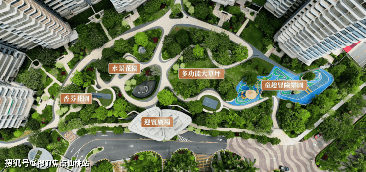 不像一些项目一眼到头的草地或者两排树木敷衍业主,这里划分出五大主题园区,使得整个园林视觉体验很有层次递进感。