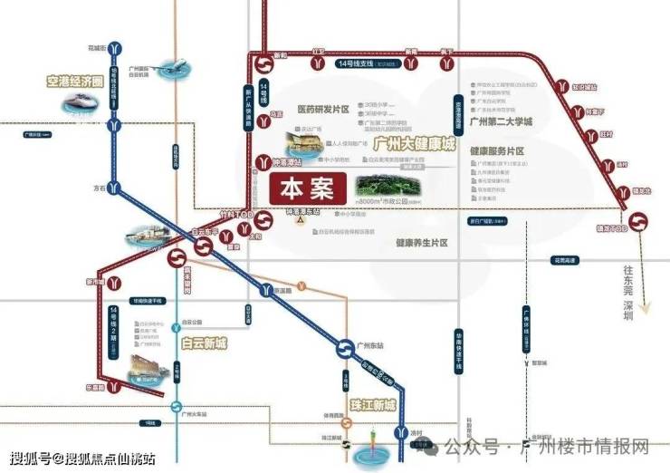 新白广城轨(在建中)1站白云机场,南向通达东莞和深圳。