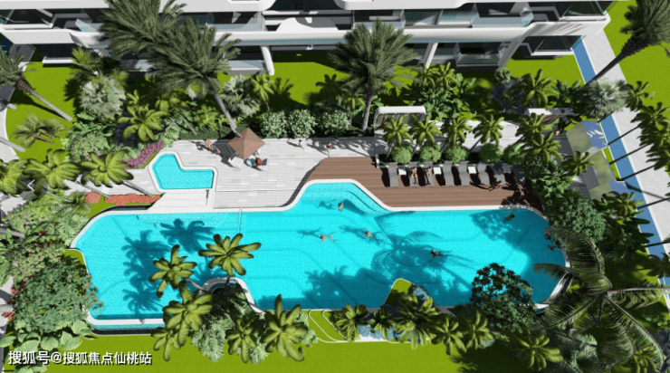 时光浮岛:中央景观会客厅、园林泳池
