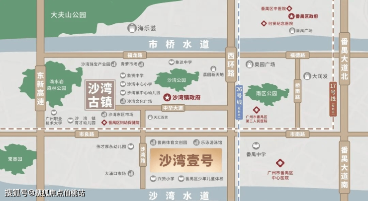 沙湾壹号,紧邻市良路与西环路双主干道,近享荔园新天地、奥园广场等繁华商圈。周边覆盖全龄段优质教育资源及番禺中心医院等医疗配套。未来双地铁(17/26号线【规划中】)加持,直通广州核心区域。