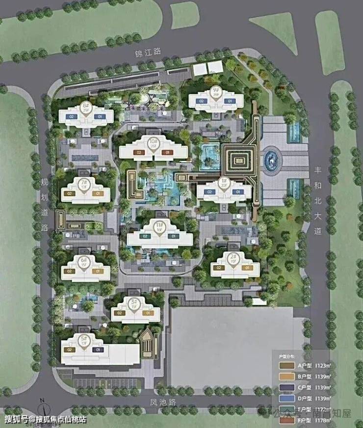 以奢华度假酒店为蓝本打造安缦式艺术庄园,采用 “环、双轴、七境” 布局,还有中央水景庭院、下沉式花园等,甚至在消防登高面做了大片水系,连 “第五立面” 都做了艺术设计,营造出松弛雅致的居住氛围。