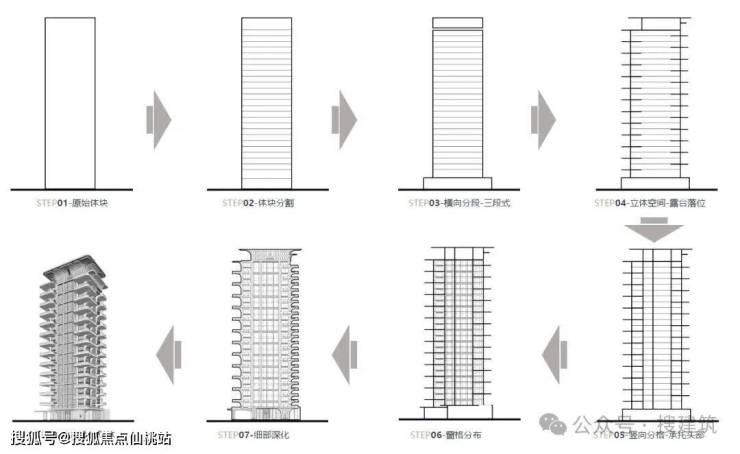 塔楼身段造型从自然界竹节元素中汲取灵感,展现出独特的美学与文化内涵。设计团队提取了竹节所蕴含的优美弧线,并将其巧妙融入到塔楼的轮廓线条之中。象征着积极向上的生长态势,寓意着生活的细水长流与节节高升。
