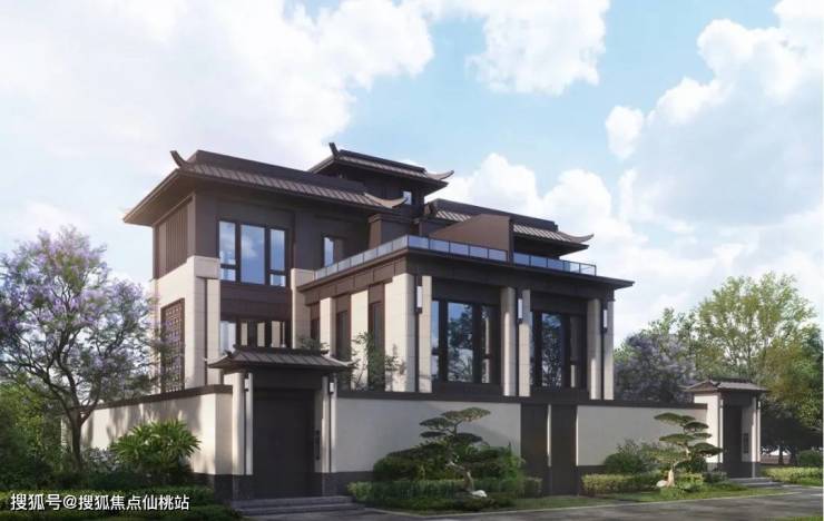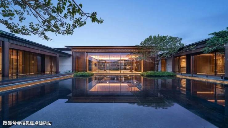 华发院子秉承着华发向来注重产品通透、采光好的理念,屋身选取石材、真石漆搭配大面积玻璃面造型,屋顶选取庑殿顶设计,并运用铝板材料,整体典雅大气又保障了光照和对流。