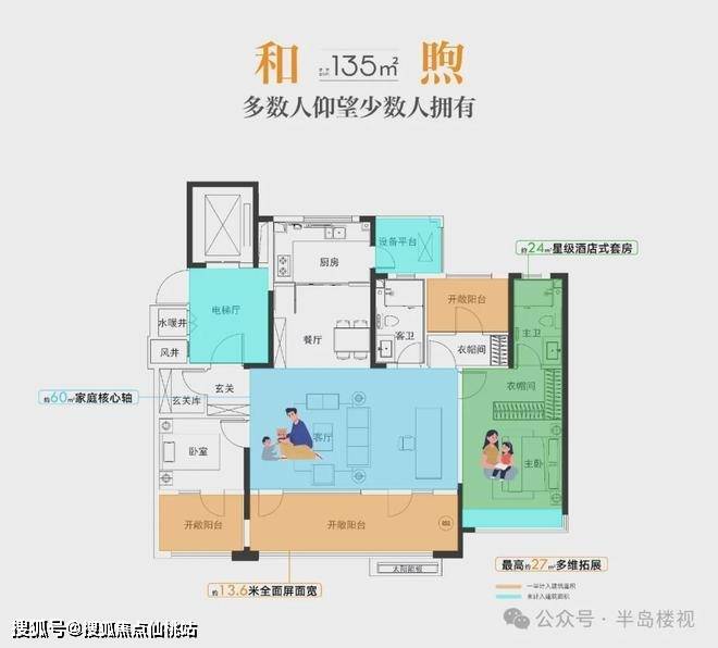 建面约135㎡和煦户型,多数人仰望少数人拥有