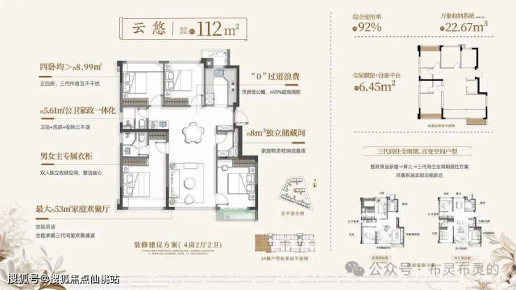 建发璞云主力户型82-113㎡,大胆的纯洋房设计+全飘窗、设备阳台赠送,让综合使用率十分惊艳: