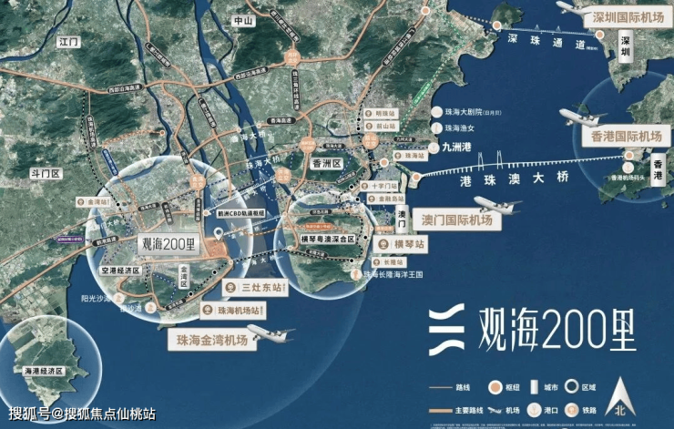 洪鹤大桥、金海大桥(在建中)、金海二桥(规划中)三桥连横琴,10分钟到横琴,24h通关澳门、香港;一站机场,10分钟全球畅达;紧邻未来轨道交通枢纽,1KM城轨站直通湾区11座核心城市。