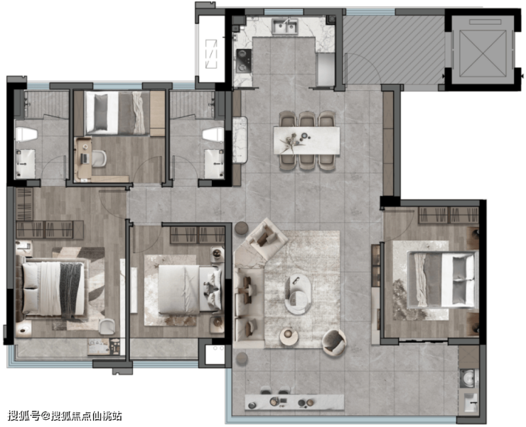 .餐厅C位化:餐厅中轴布置,结合餐桌环游动线。