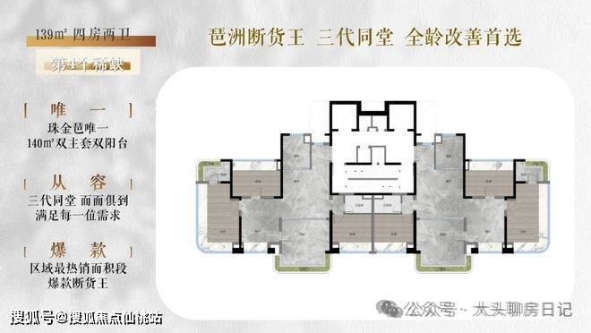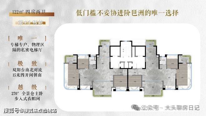 ✓ 面积段涵盖约122、139、187㎡,都是新规户型,均为南北对流双阳台四房,专梯入户,低密纯粹,非常值得期待。