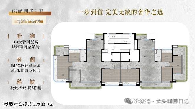 3、建面约187m²央楼王4房