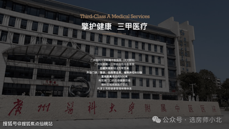 周边医疗:驱车约15分钟可至暨南大学附属第一医院(东圃院区)、中山大学附属第三医院(天河院区)等,满足更复杂的医疗需求。