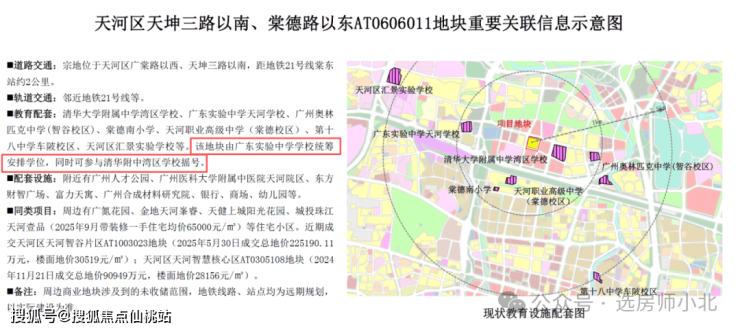 项目的教育可以说是天河区的顶配了,跟辰园湖境类似的,拿地的时候已经定了,学位由省实统筹安排,不仅能直接统筹保利天瑞同款的九年制名校——广东实验中学天河学校,还可参与相邻的清华附中湾区学校摇号,两大顶尖名校双重托底,这个教育配套太顶了