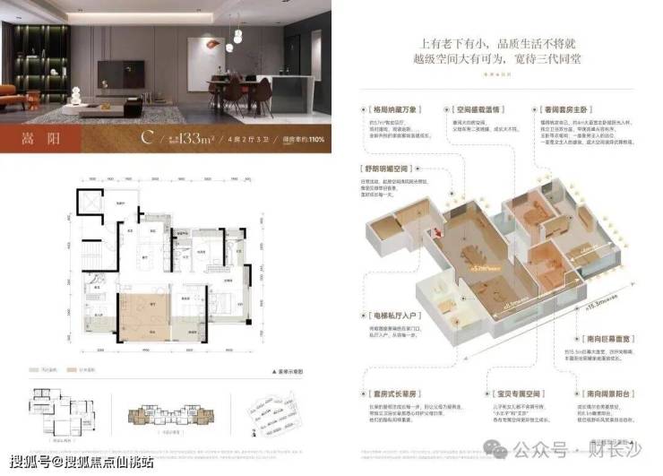 崇阳:133㎡四房两厅三卫精奢畅享家,朗阔格局三代同堂越级尊享