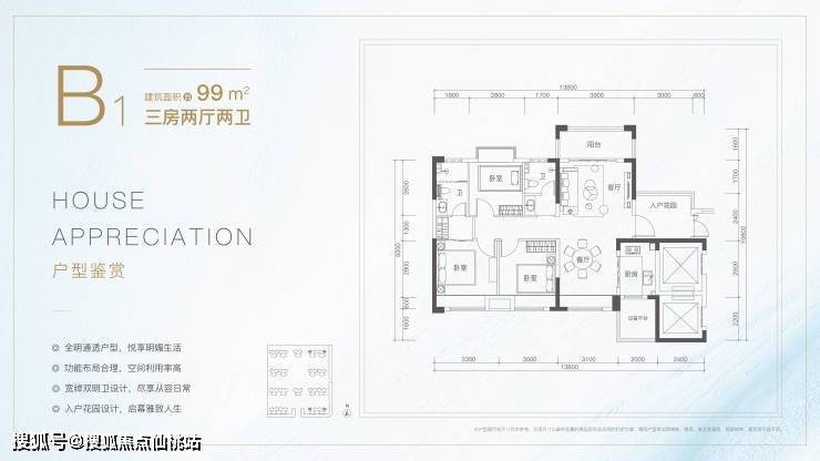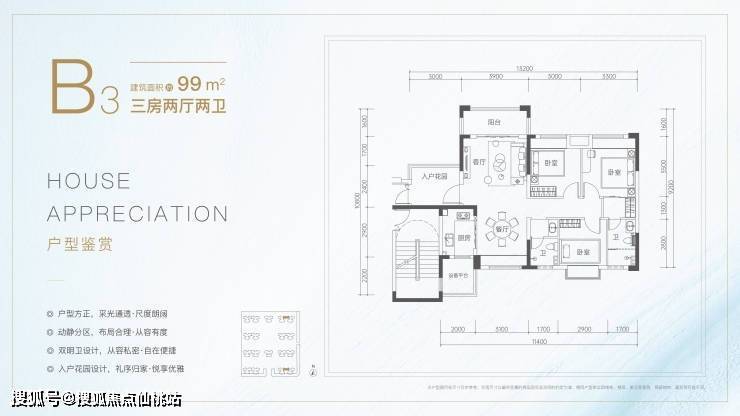 产品涵盖99-119㎡品质居所,两梯四户,99㎡三房配备2个卫生间,双阳台,超大赠送;119㎡四房轻松满足住房需求,刚需改善一步到位,且南北双阳台、全屋飘窗,得房率极高,是目前区域内性价比最高、户型最优异的安居产品。