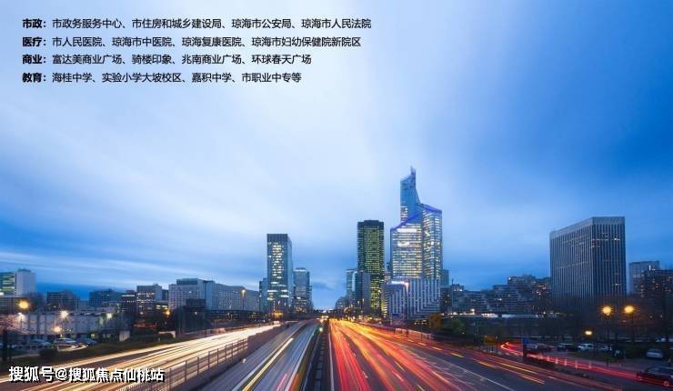 项目临近城市主干道金海路,享市级醇熟配套,5公里范围内教育、医疗、产业、商业等配套资源齐全,项目西侧将建设琼海首个城市湿地公园,一站式满足日常生活所需。