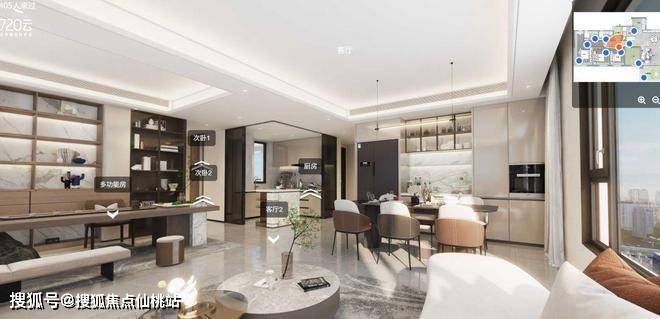 从这个角度看,把多功能房打通处理,客餐厅空间更大气。