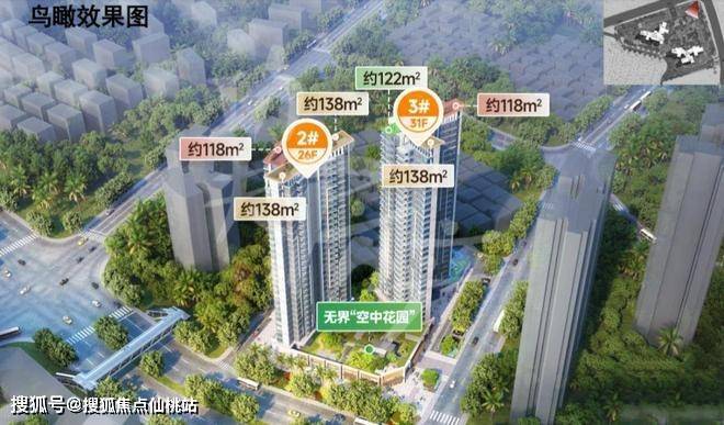 项目主推建面约118-138平的四房,户户带花园露台,使用率最高107%。