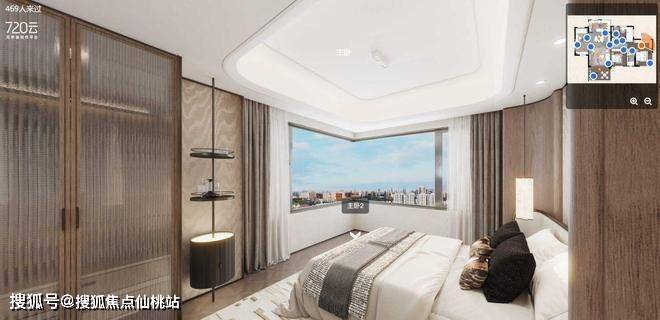 主卧室同样有270度无敌景观窗,以及无飘窗结构处理。