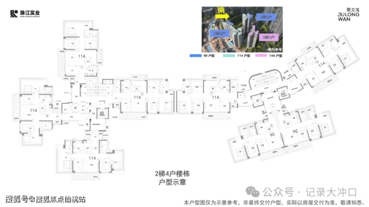 (1)高比例私梯入户:项目约70%的户型实现了私梯入户或入户花园配置。特别是144㎡大户型,全部采用3梯3户的专梯专户设计,而114㎡四房部分户型也实现了私梯入户,未配置专梯的户型则配备了入户花园,极大提升了居住私密性和舒适度。