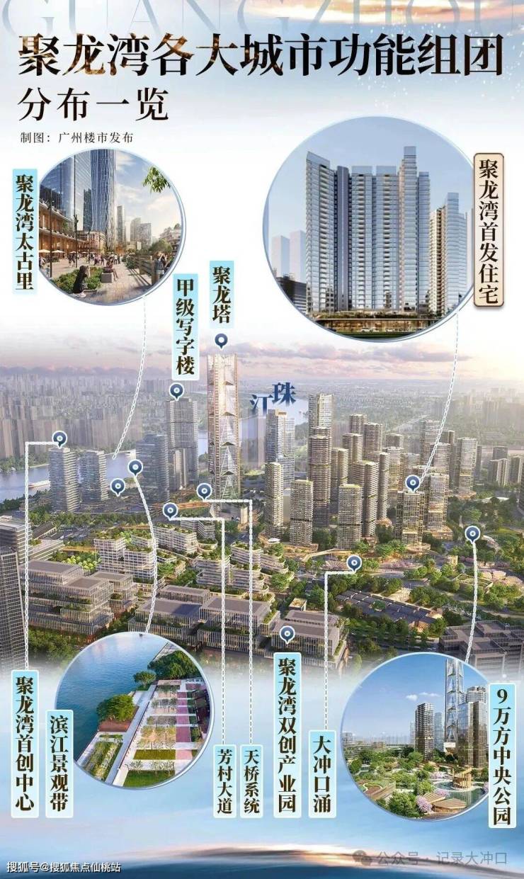 白鹅潭作为广州"西联"战略的核心支点,正处于价值爆发前夜。根据《广州市白鹅潭地区发展规划(2022-2035年)》,白鹅潭将被打造为辐射湾区西部的产业集聚区,形成"两区五组团"的产业发展布局。聚龙湾片区作为白鹅潭商务区核心区域,总占地约2.21平方公里,总投资超千亿元,预计将成为广州西部CBD的核心组成部分。
