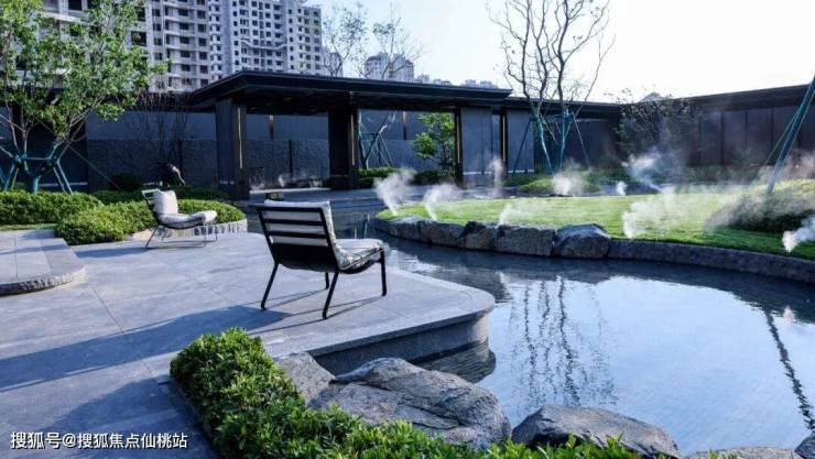 水景侧面首次选用了双曲面驳岸石工艺,景观团队在甄选色泽、纹理、形状自然的山西黑带石皮驳岸石后,安排专人驻厂完成数控切割、人工精修、预置摆放、编号排序等多道工序,再经现场实地精细调整安装,让每块石材呈现自然错缝,营造出溪涧景观的自然韵味和趣味性。底部首次采用了流水石矩阵铺装工艺,全部使用人工劈凿代替机切、灌浆工艺代替干砂砌筑的升级做法,不仅实现水流轨迹与石材肌理的自然匹配,还能耐受住时间的洗礼和考验。