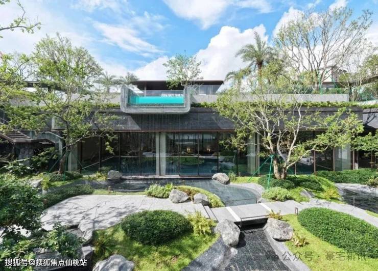 立体式度假园林,以层级叠错的巧思,将自然地形与叠水叠石巧妙融合,为特色森系庭院的进阶想象写下生动注脚。