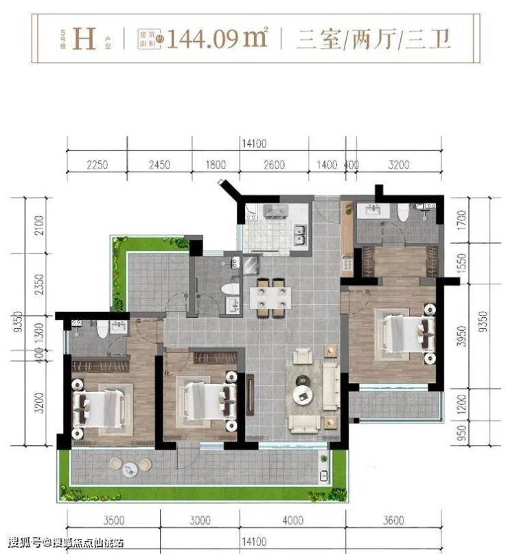 全景户型,大面宽全景观空间布局,餐客厅轩朗开阔,三阳台臻稀户型,艺术空间组合序列,人性化精析设计,纵享更多起居空间。