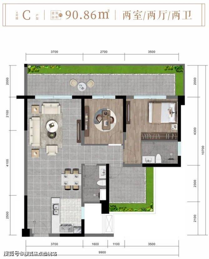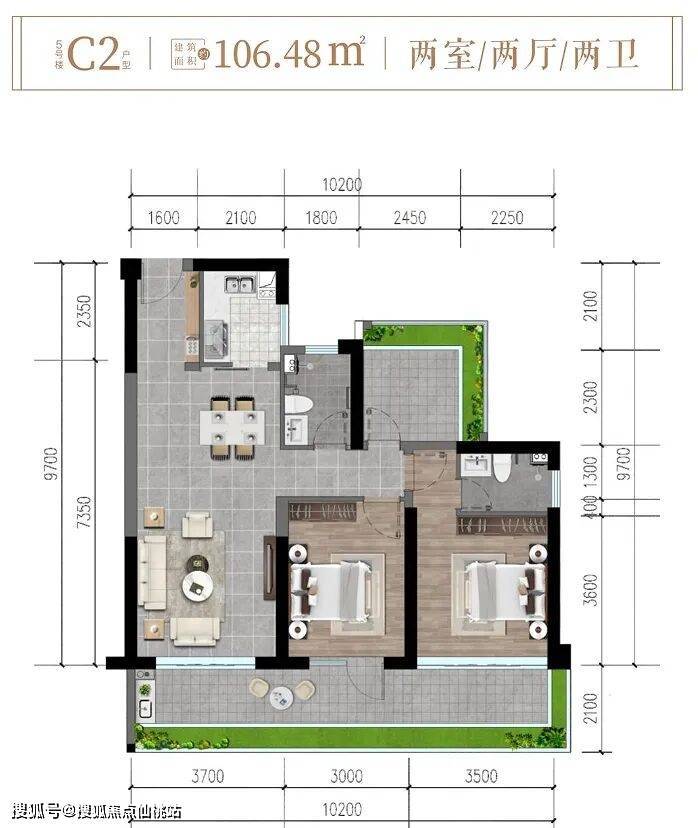轩朗舒适、高使用率全明户型,约10米面宽的景观阳台,横跨双卧一厅,开阔的起居空间,视野通达,纵享无边美景。私享多功能阳台,自由变换,拥有更多空间惊喜。