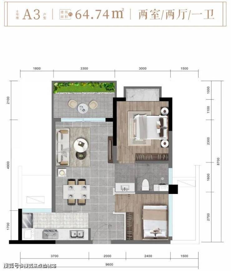 ✨ 6楼A3户型约64㎡精致两房两厅一卫