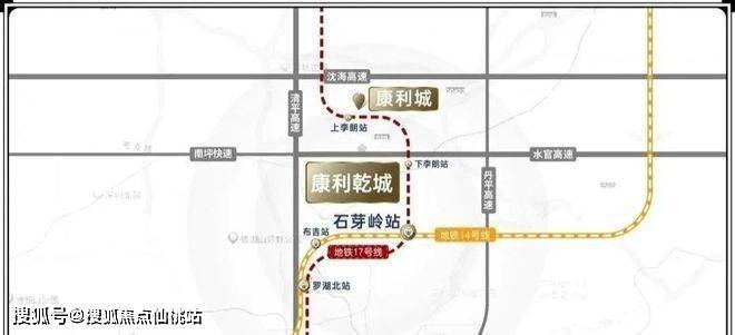 康利乾城属 14、17 号线双线交汇的地铁上盖物业,周边有 3 条高速、2 条快速路,交通便捷。